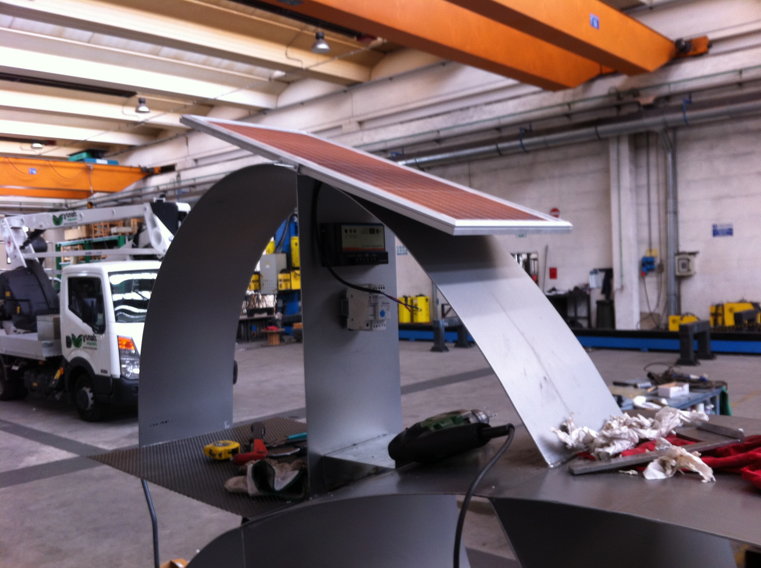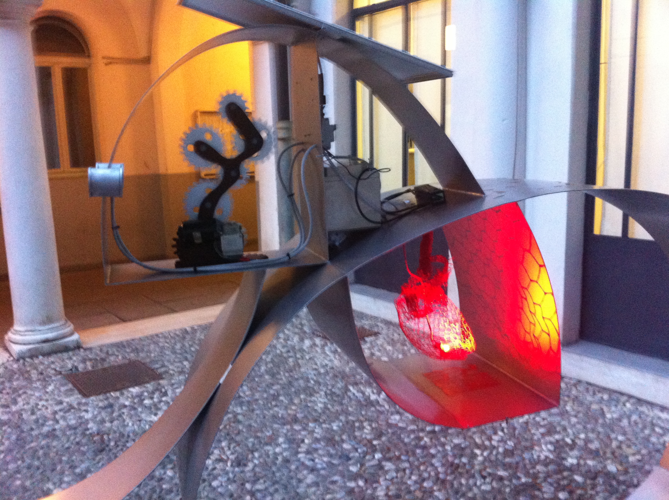 It’s also equipped with a PV system (a 40W PV caravan kit with 40A standard battery) which powers a 1A engine (for the brain) + n.2 1A led light (the eyes) + n.1 1A red light (the heart).