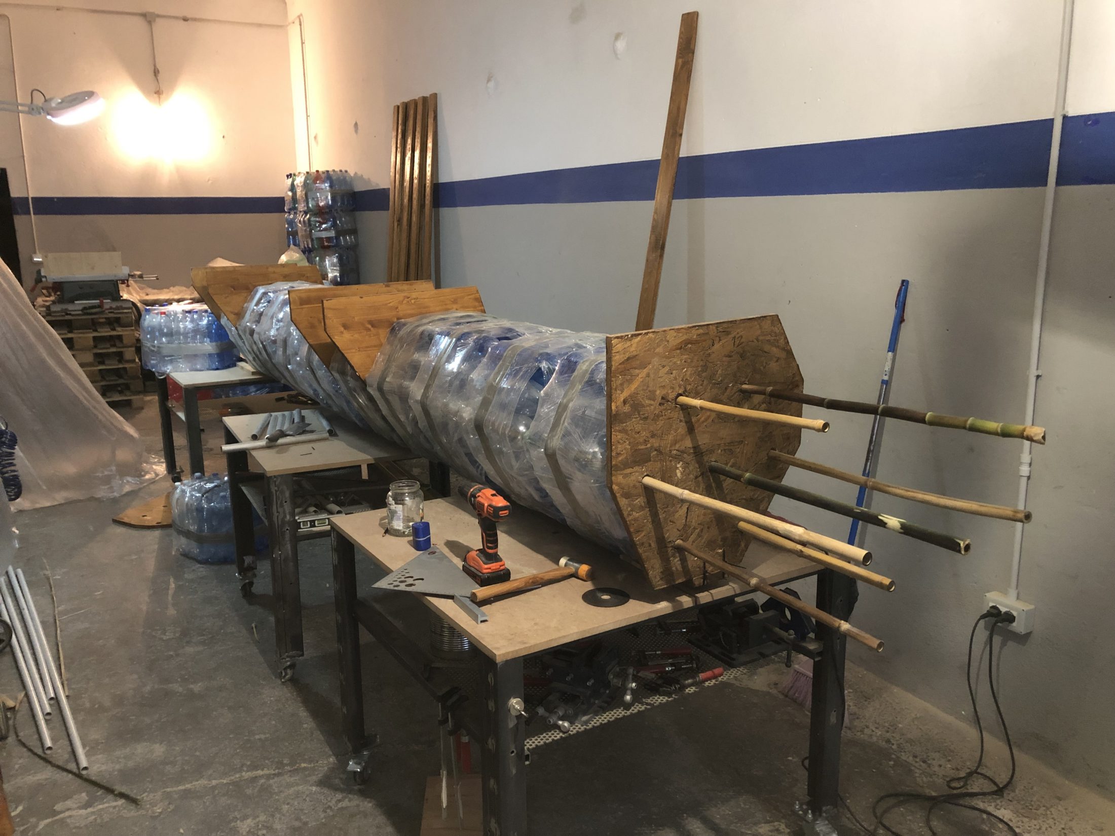 Project developed for the italian association 7milamiglialontano in collaboration with Cauto, Itaca is a boat… or better a raft or whatever it makes you float on water. And it’s made of plastic bottles. Hundreds. And scraps (wood, bamboo, canapa ropes). You pile them, you built up modules, assemble, tight each piece to another and create a structure. More or less the creation process is always the same. But this one was kind of a boat: engineered by Marco, a naval engineer, I did the “dirty” job with the helpful hands of Francesco, member of 7mml.