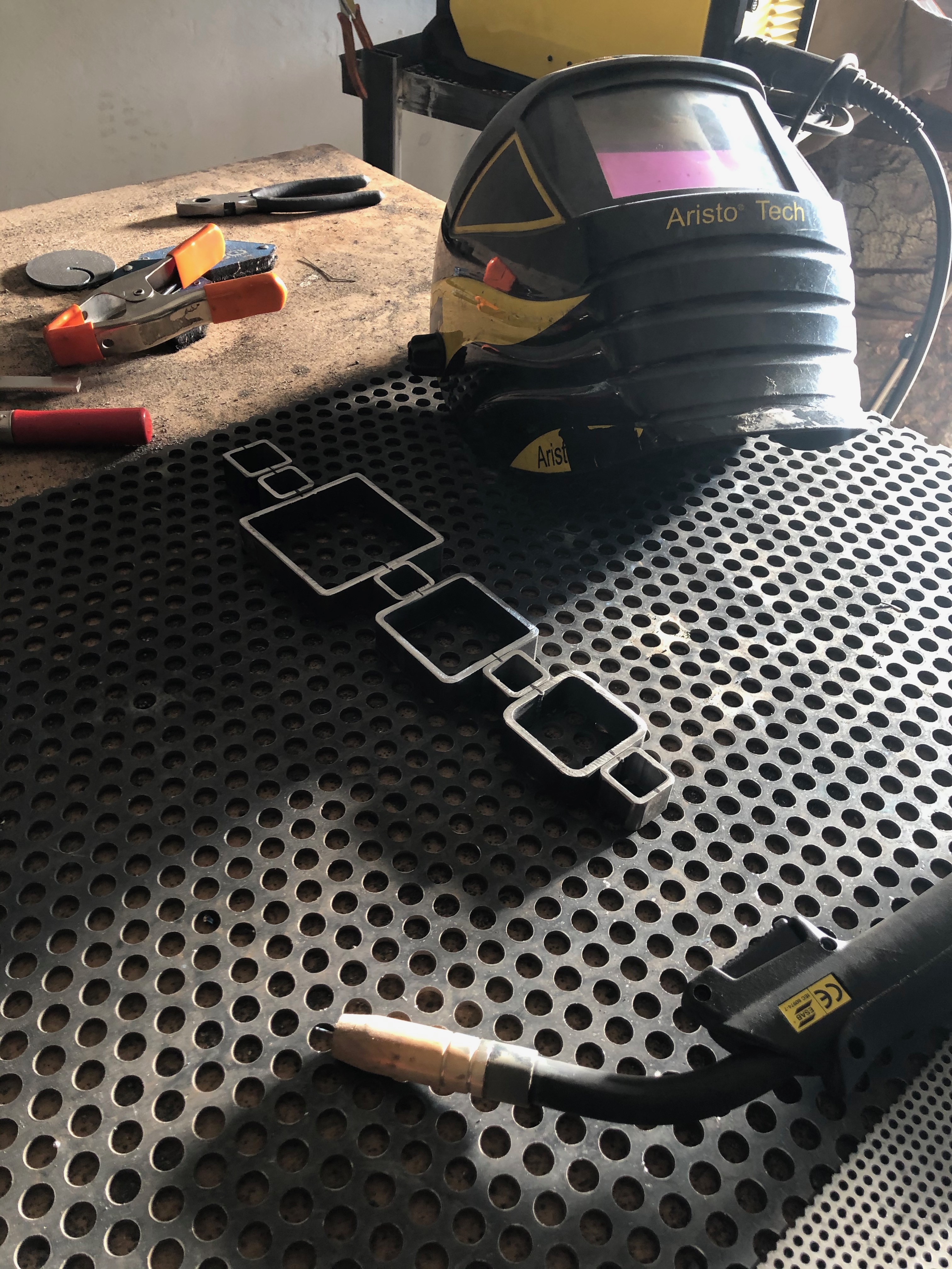 It took me 2 weeks and kind of 100hs to make it. Cut, grind, weld, grind. I changed some geometries during the production process and I can say that compared to the initial renders the final actual result maintains its aesthetic impact.