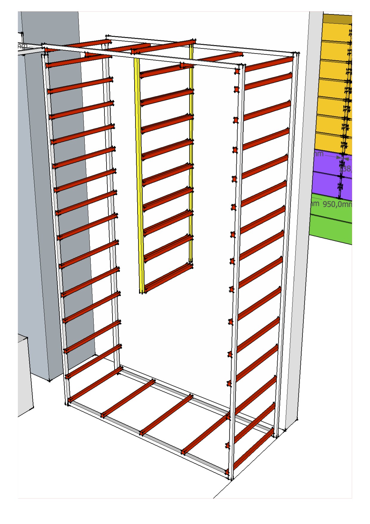 This kind of framework could be used for many applications, not only as a structure for the drawers: I can create shelves, transform it in a clothes hanging or use it as a ladder.