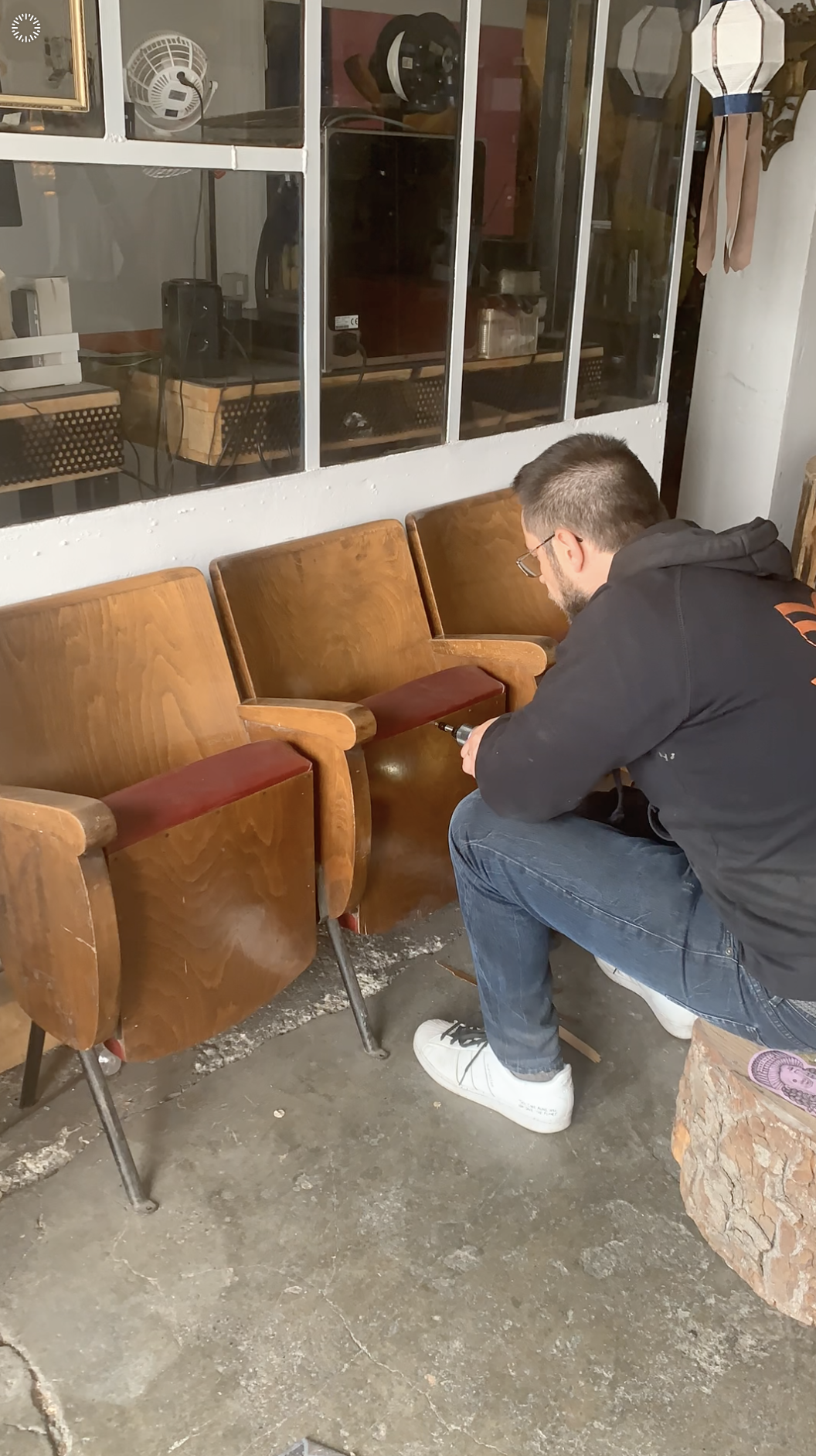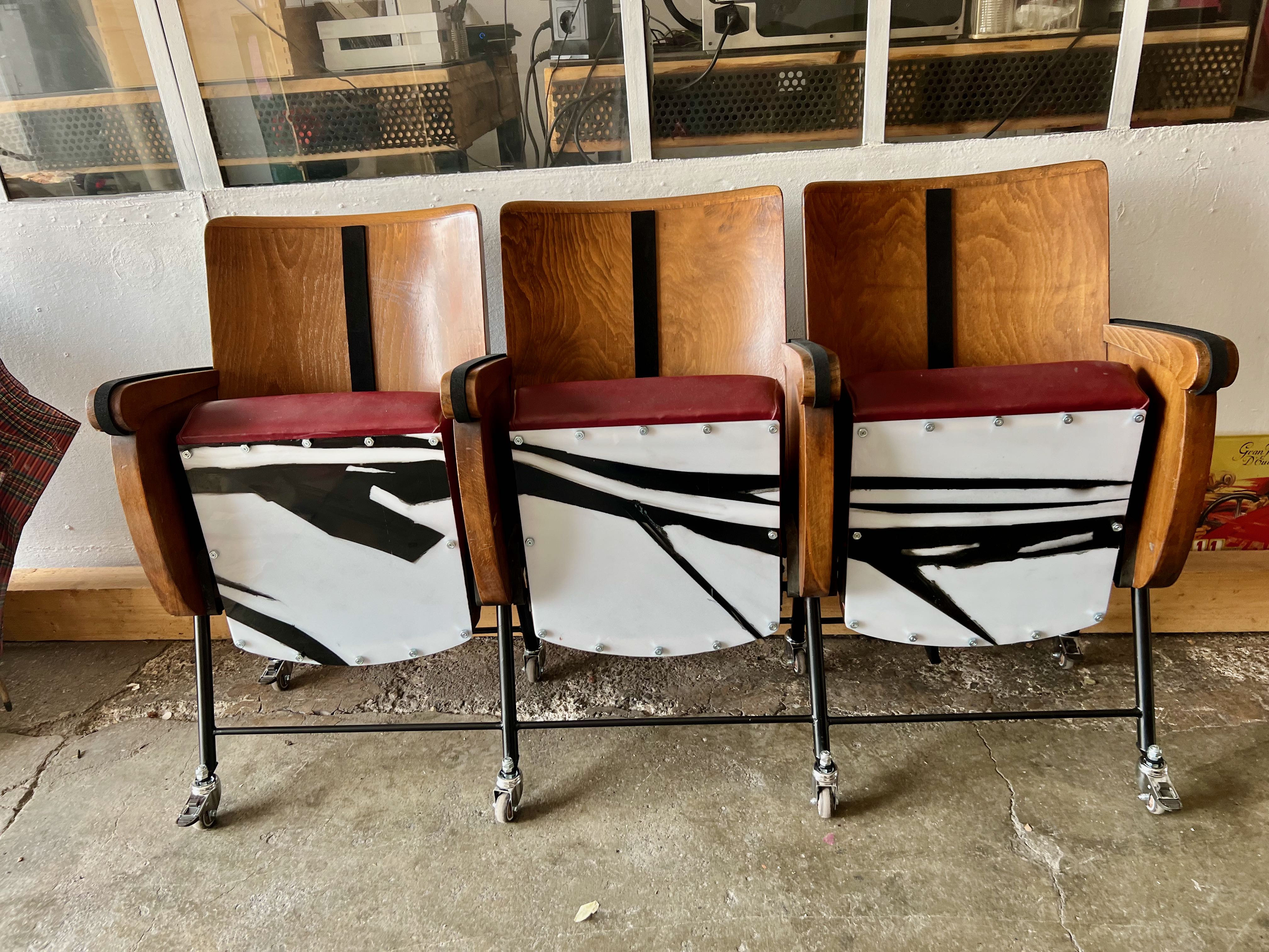 I restaured these cinema seats choosing and assemblying components lying in the lab. In the end I just bought new strip led lights.