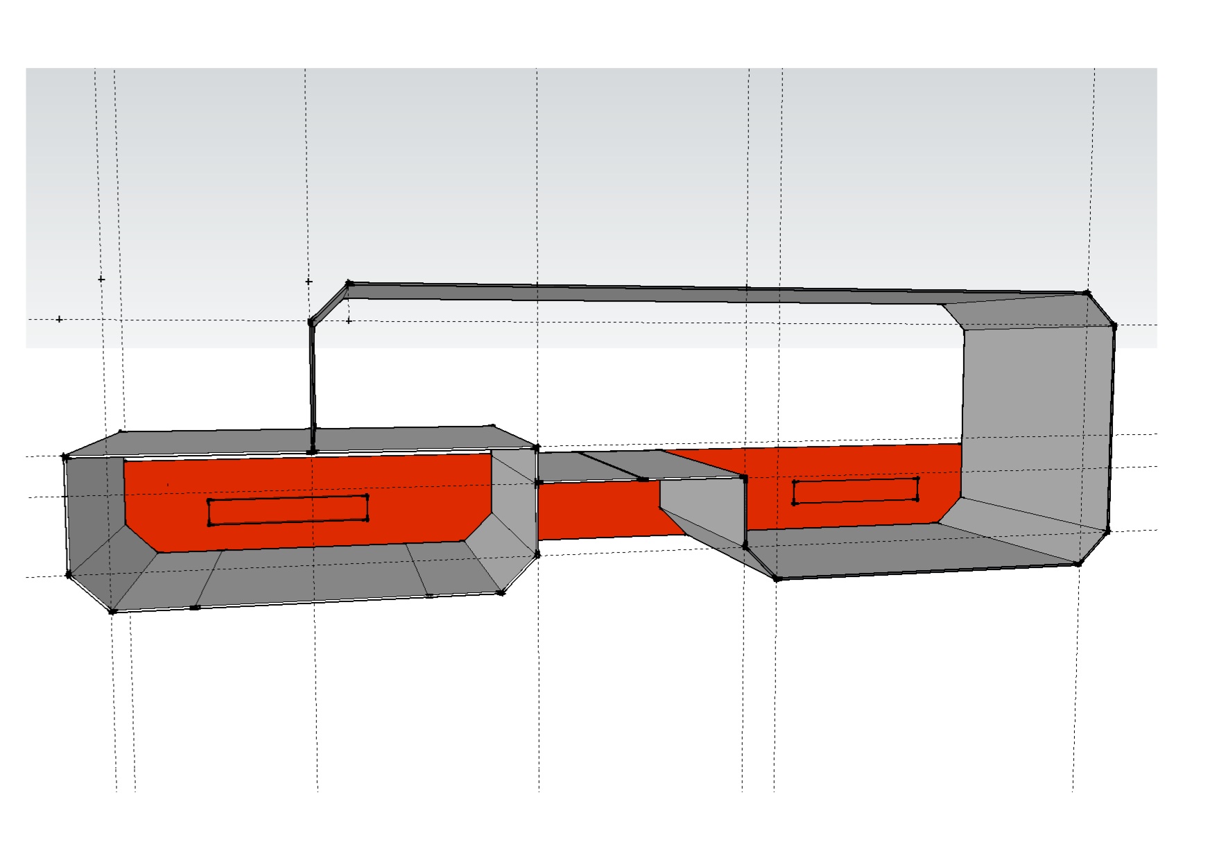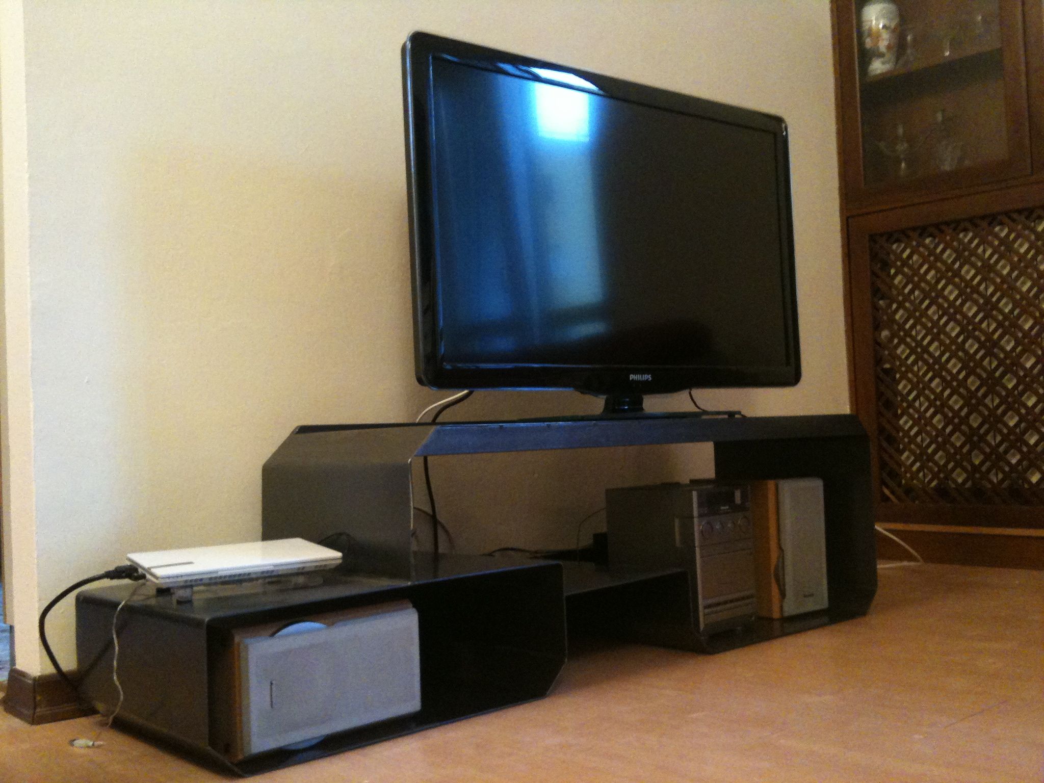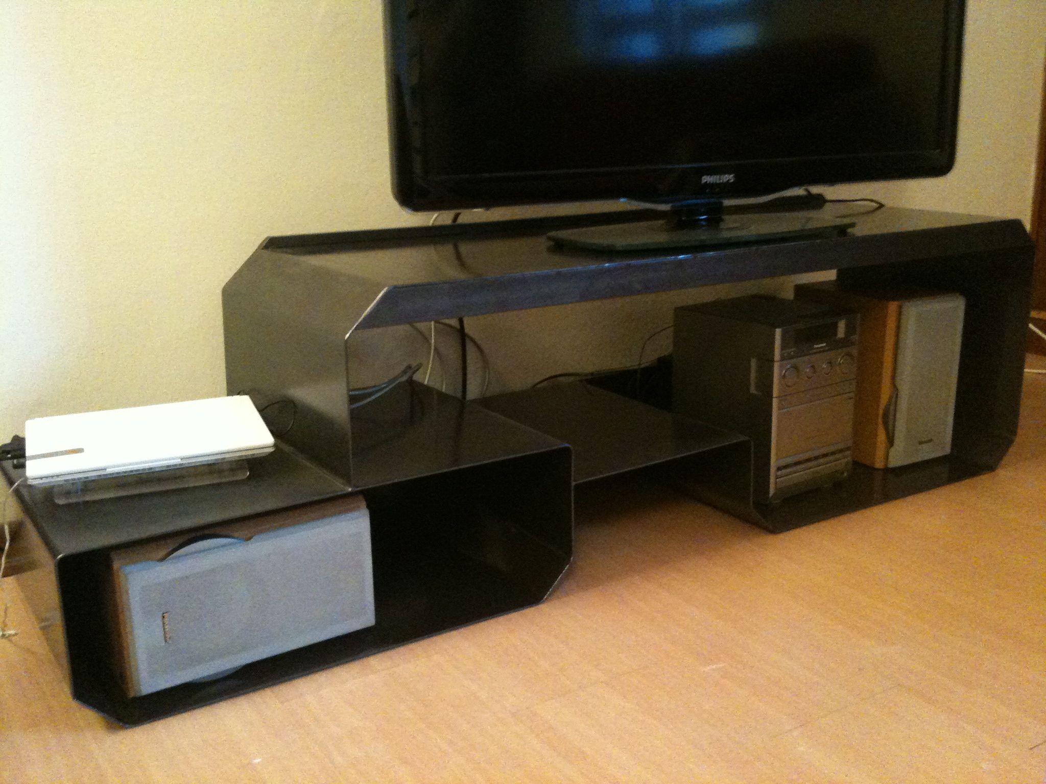 I planned spaces for the TV, the home teather and the lap top. I added a sort of tube behind the main frame, so to collect and hide cables.