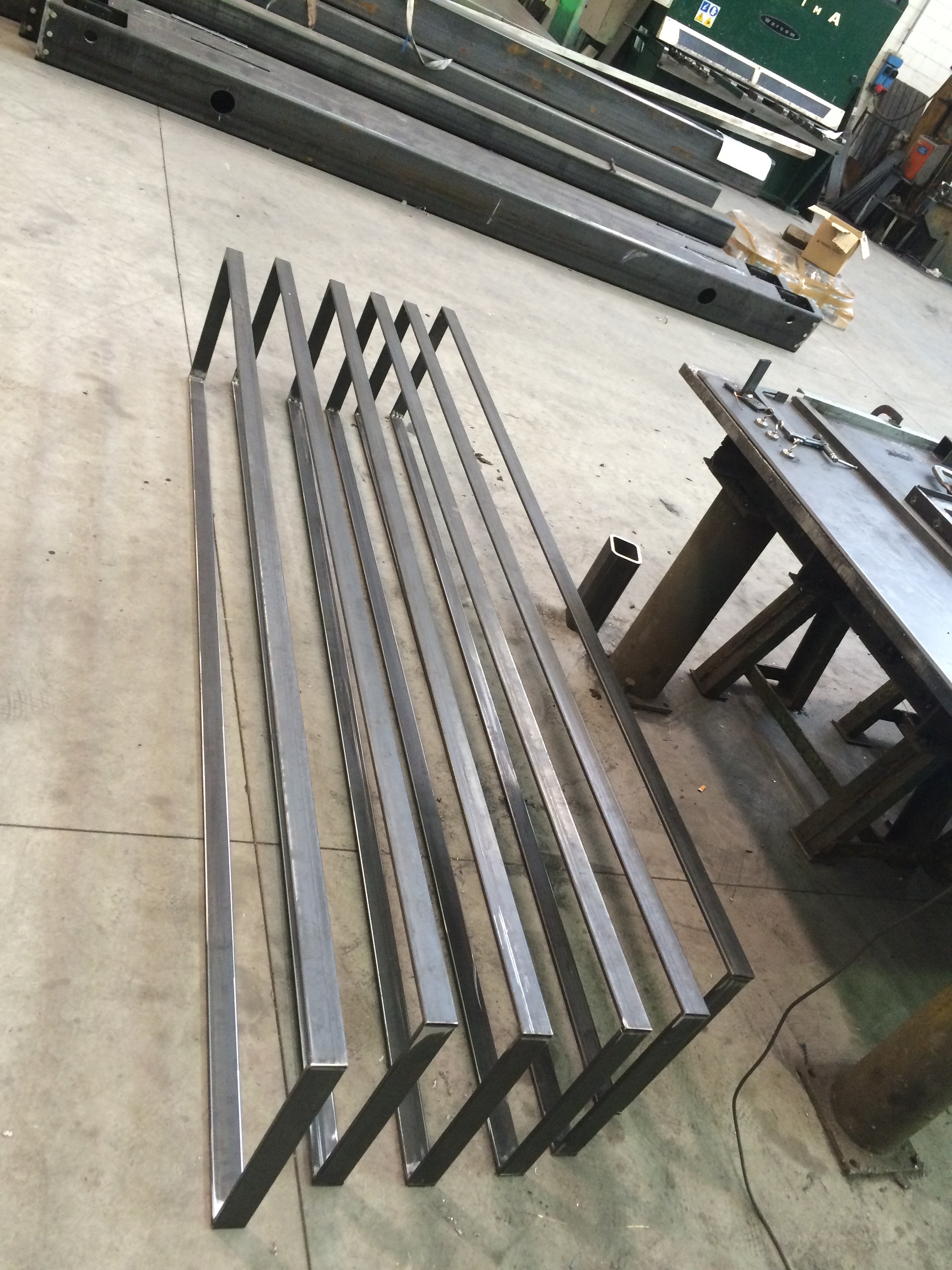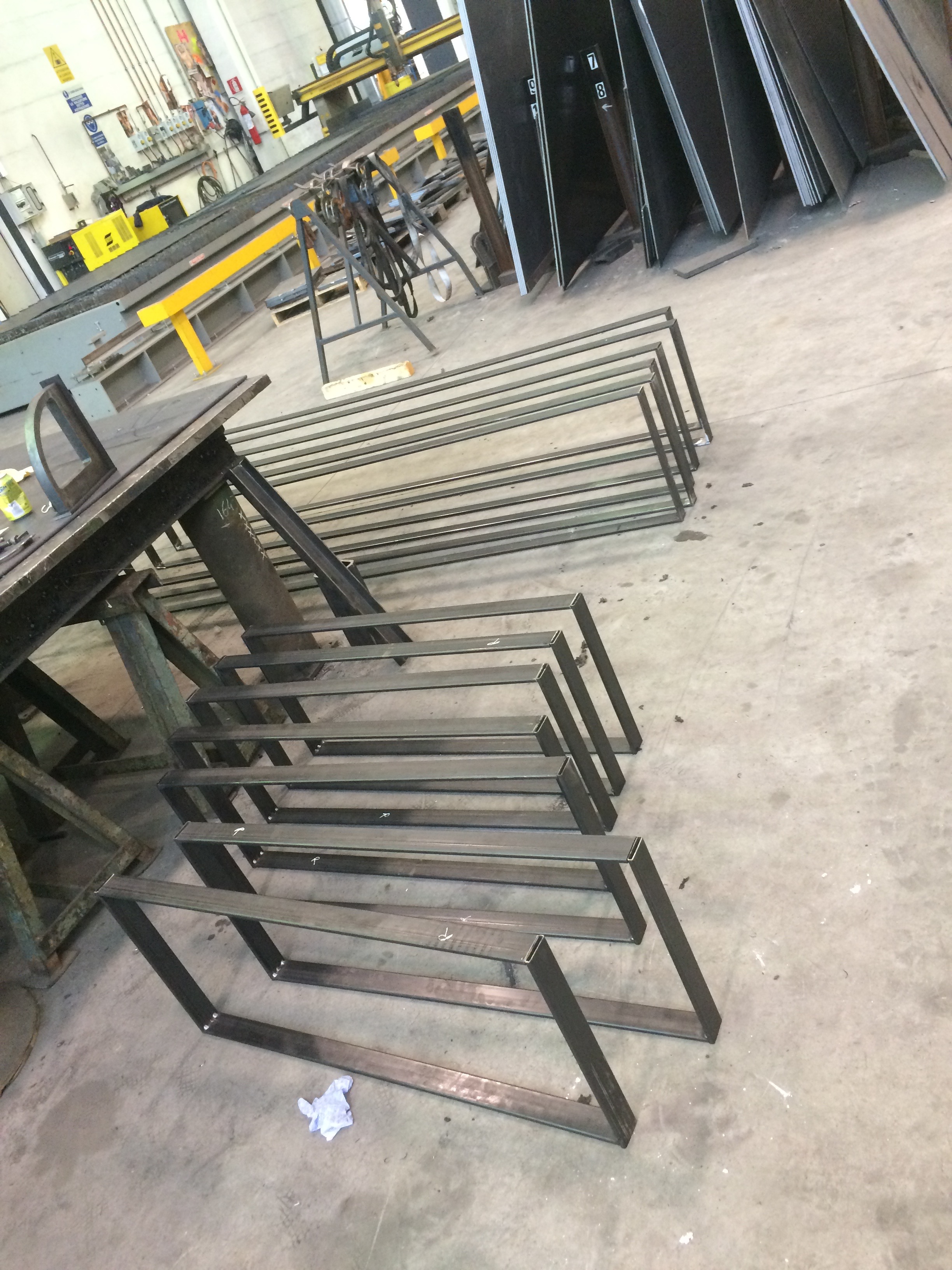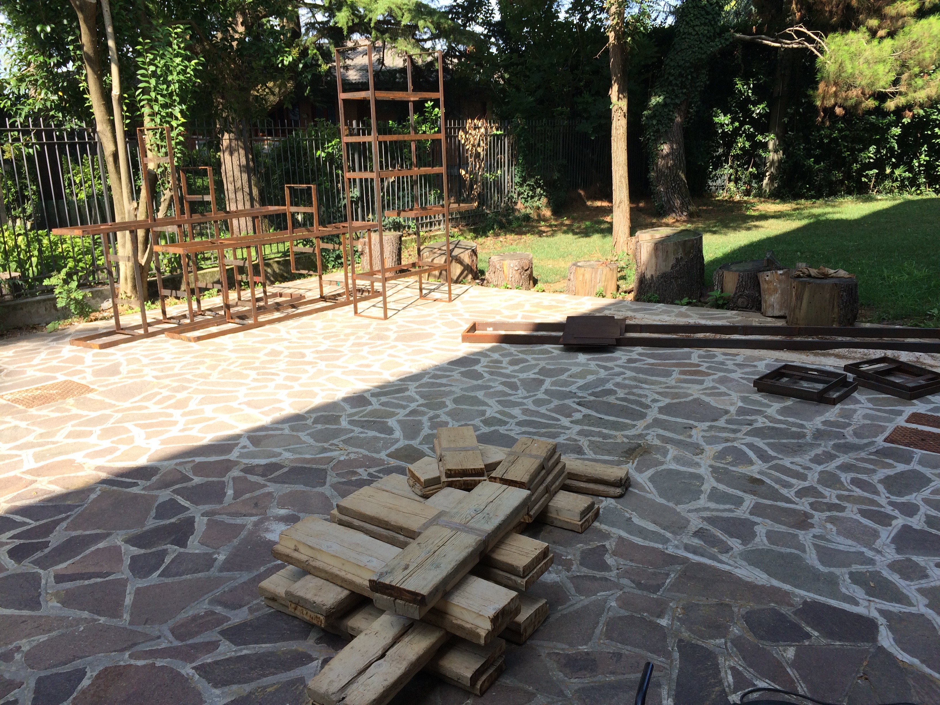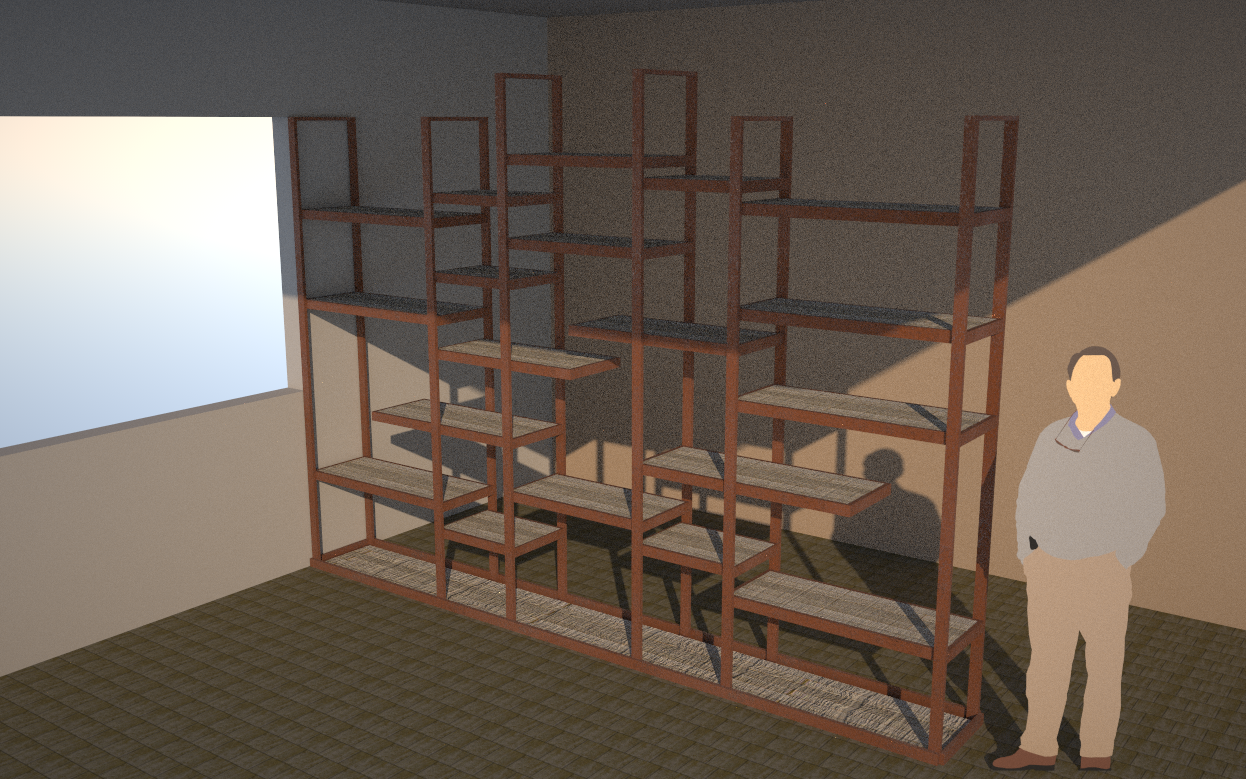 Since the bookshelf is huge it was necessary to make it modular: It resulted in a 4 pieces modular frame + 21 wood boards. Installation was fast and easy! Moreover all the rusty perforated metal panels are movable since they are placed through magnets.