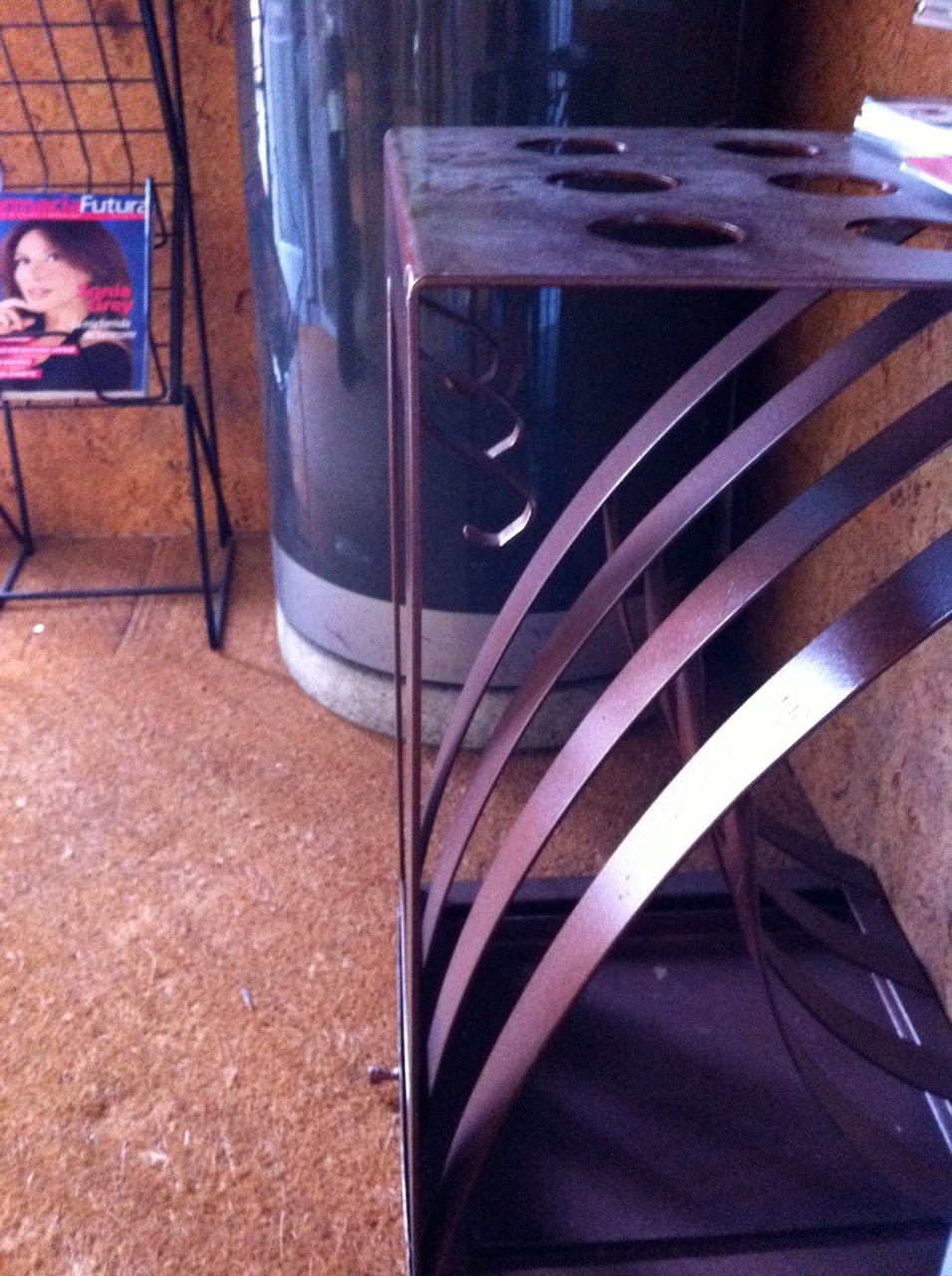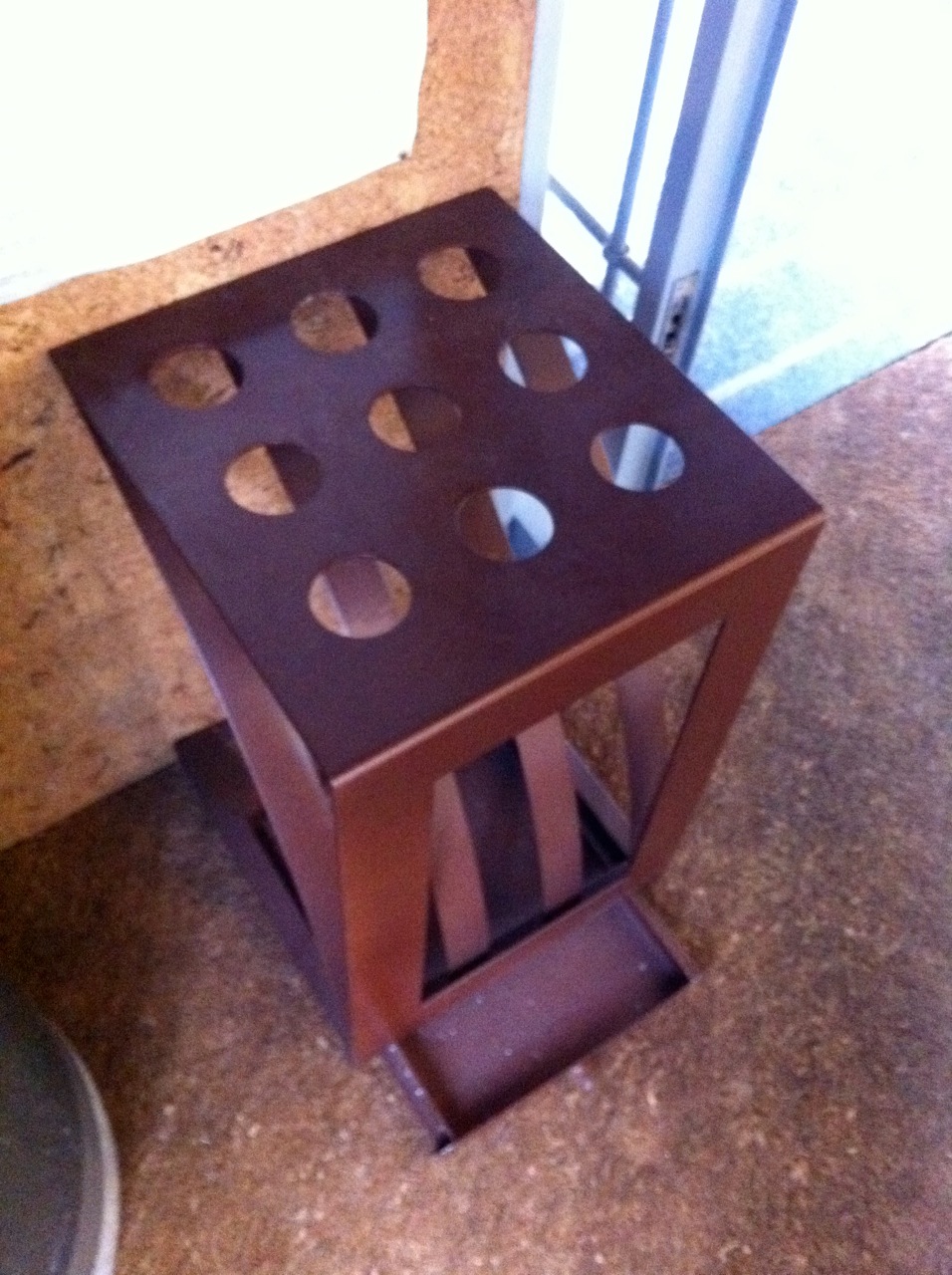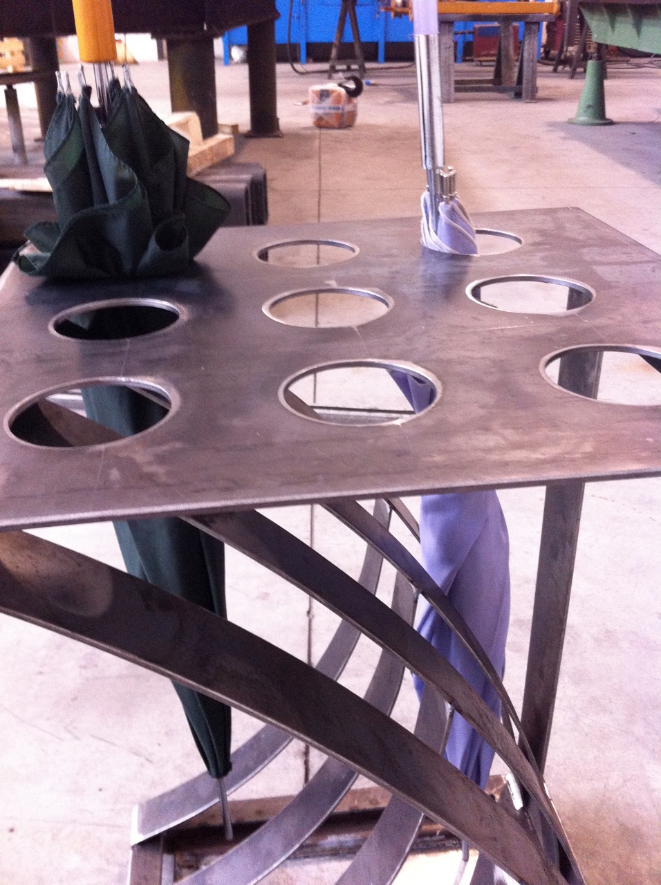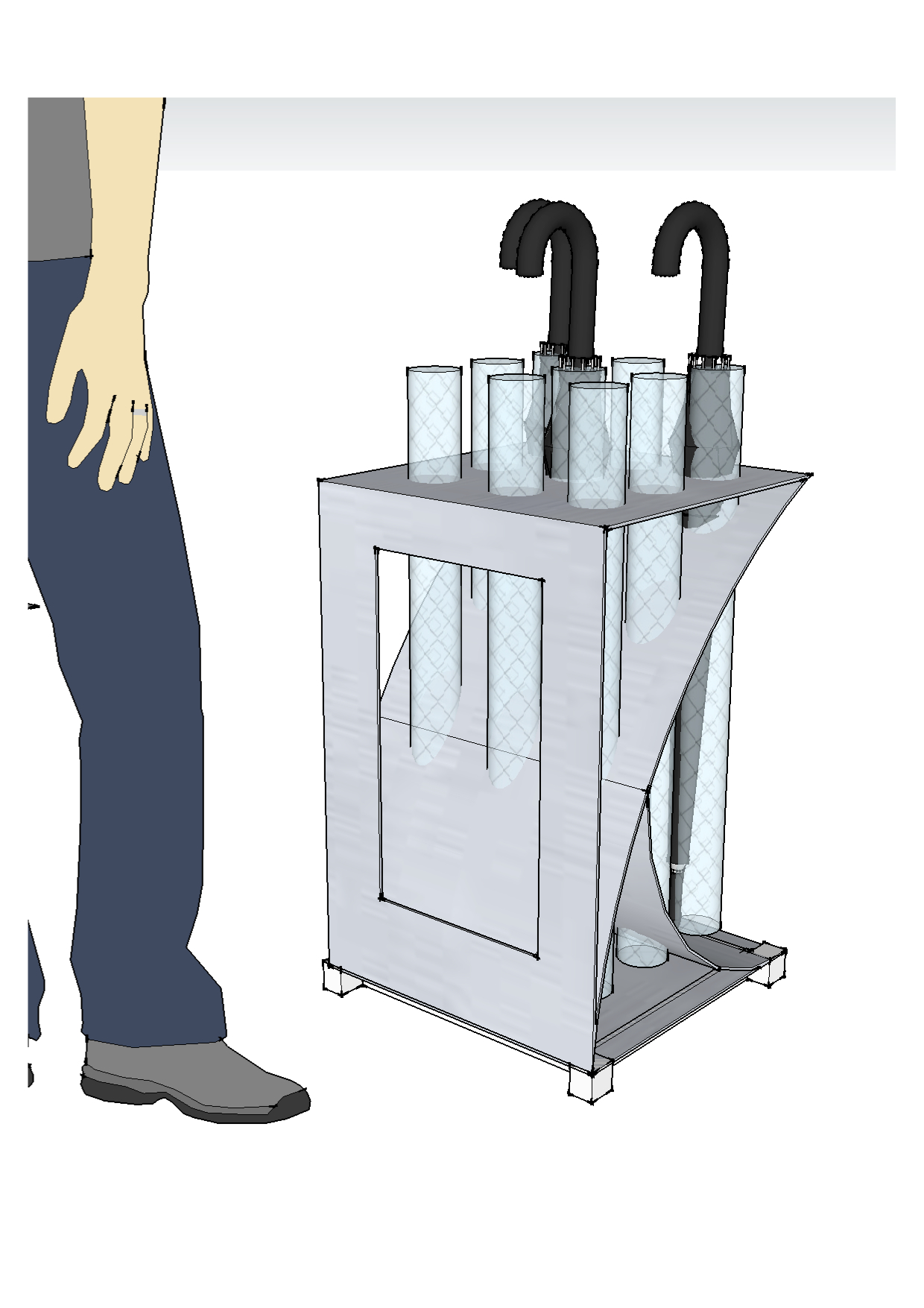 It’s a performing Umbrella Stand: 9 long umbrella holes + 3 hangers for short umbrellas, a rain water collector tray in only 630x400x300mm volume.