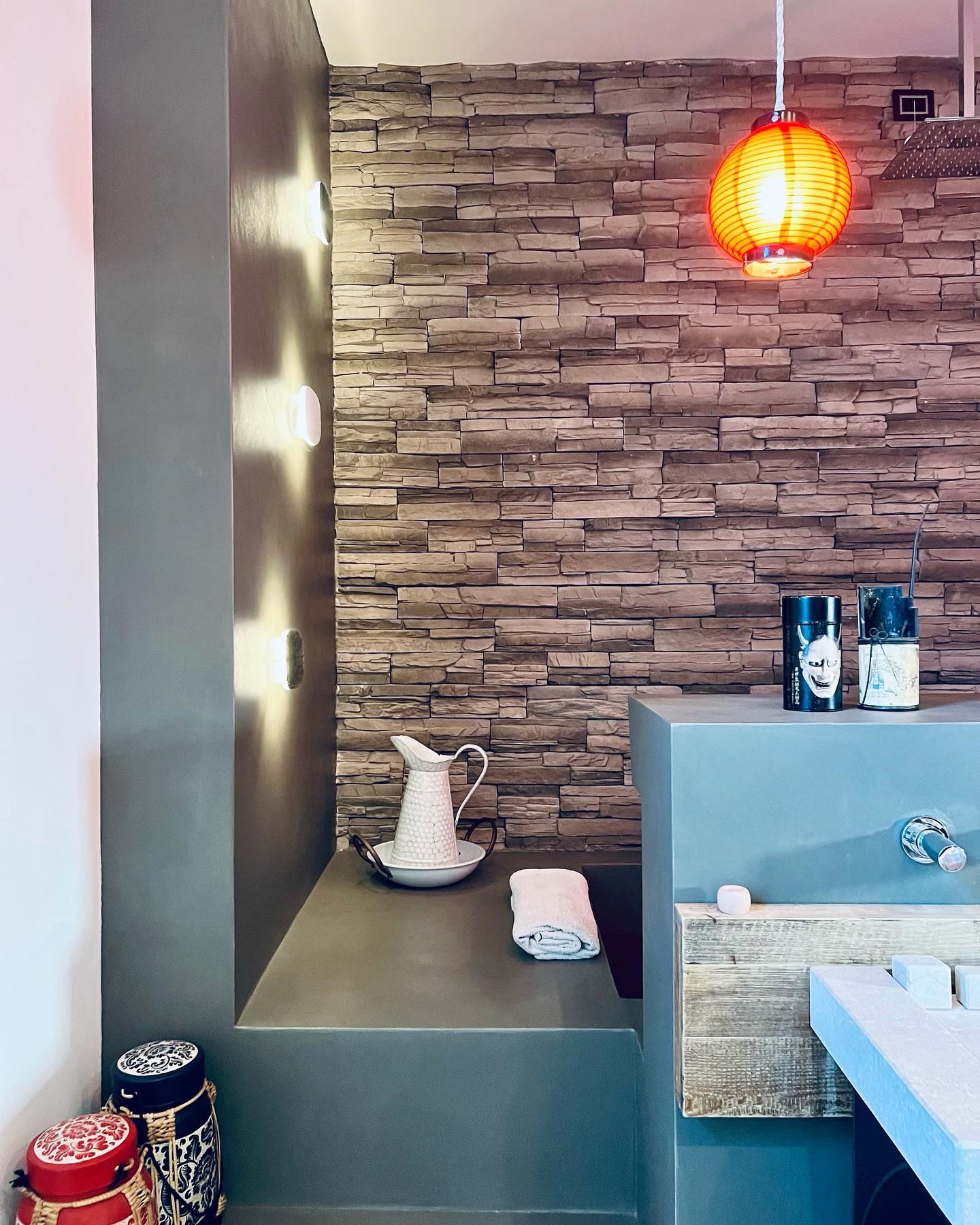 Rural and oriental atmosphere: that’s what I wanted it to make you feel like in this 20 sqm bathroom.