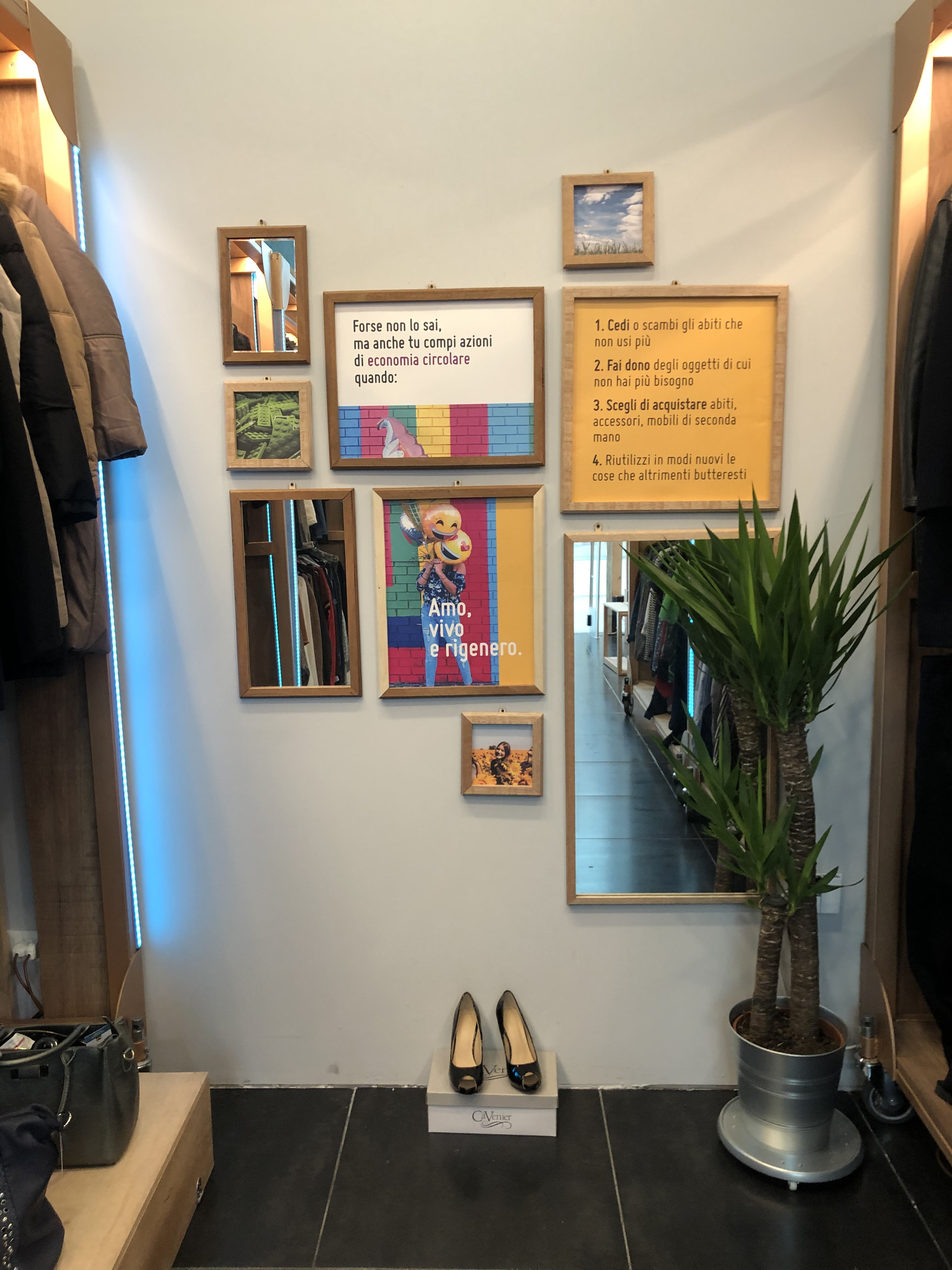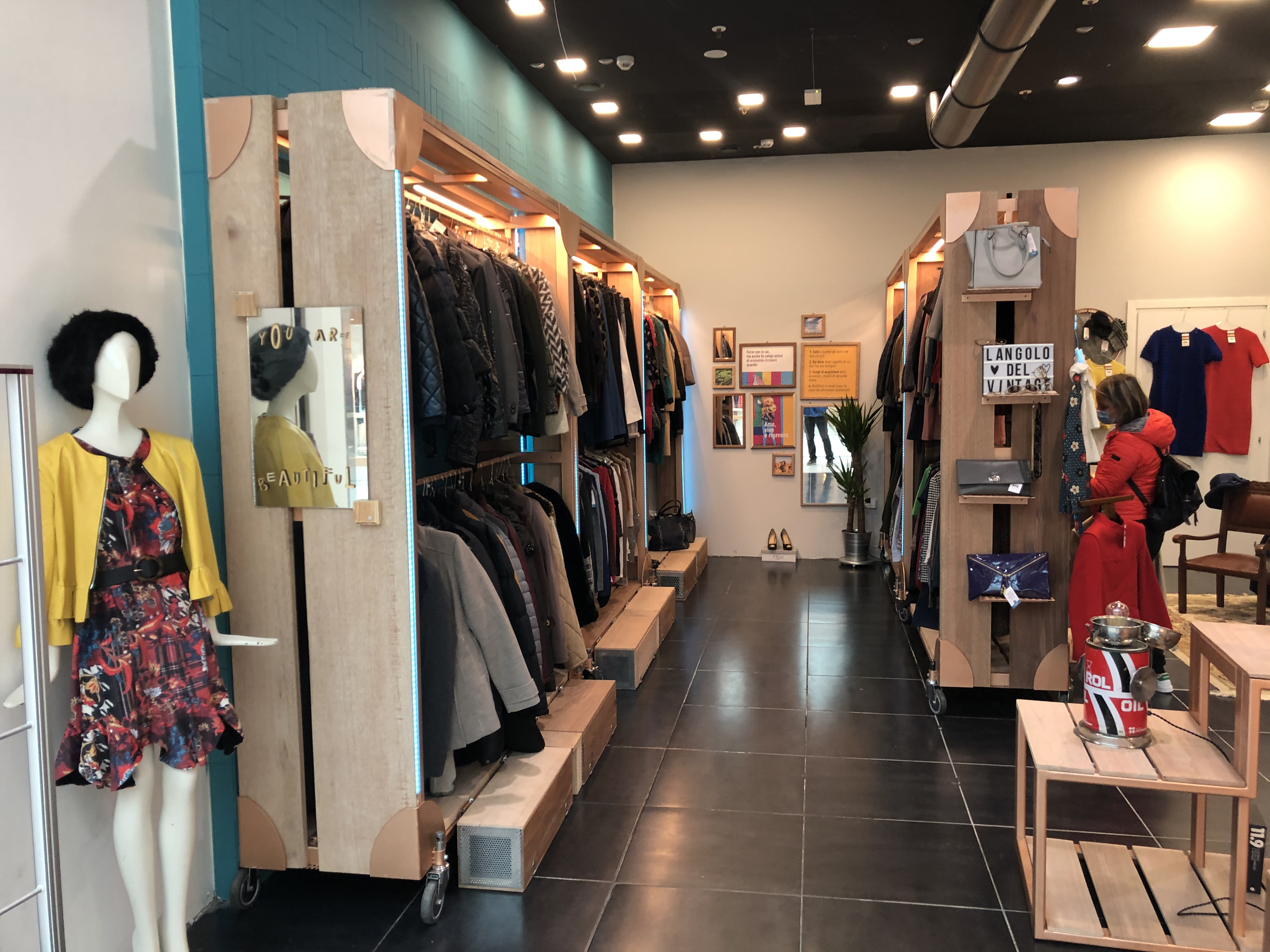 A 50sqm retail shop for second hand objects and clothing entirely built with recycled materials opened in Q3 2020 in Brescia (Italy) inside Elnòs, one of the biggest european mall.