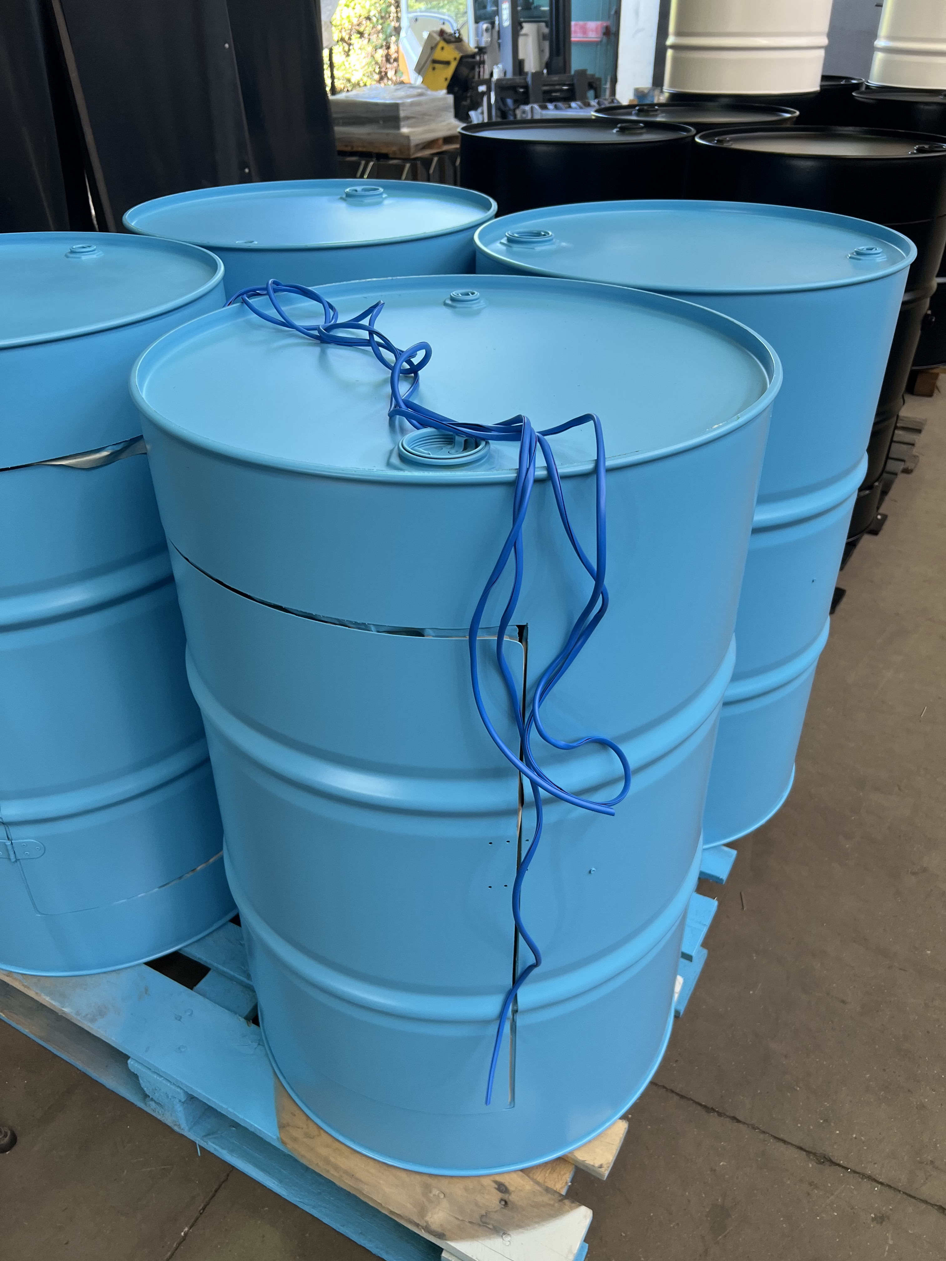 42 barrels, 32 with door and shelf. 3 different colors each one related to a specific company business.