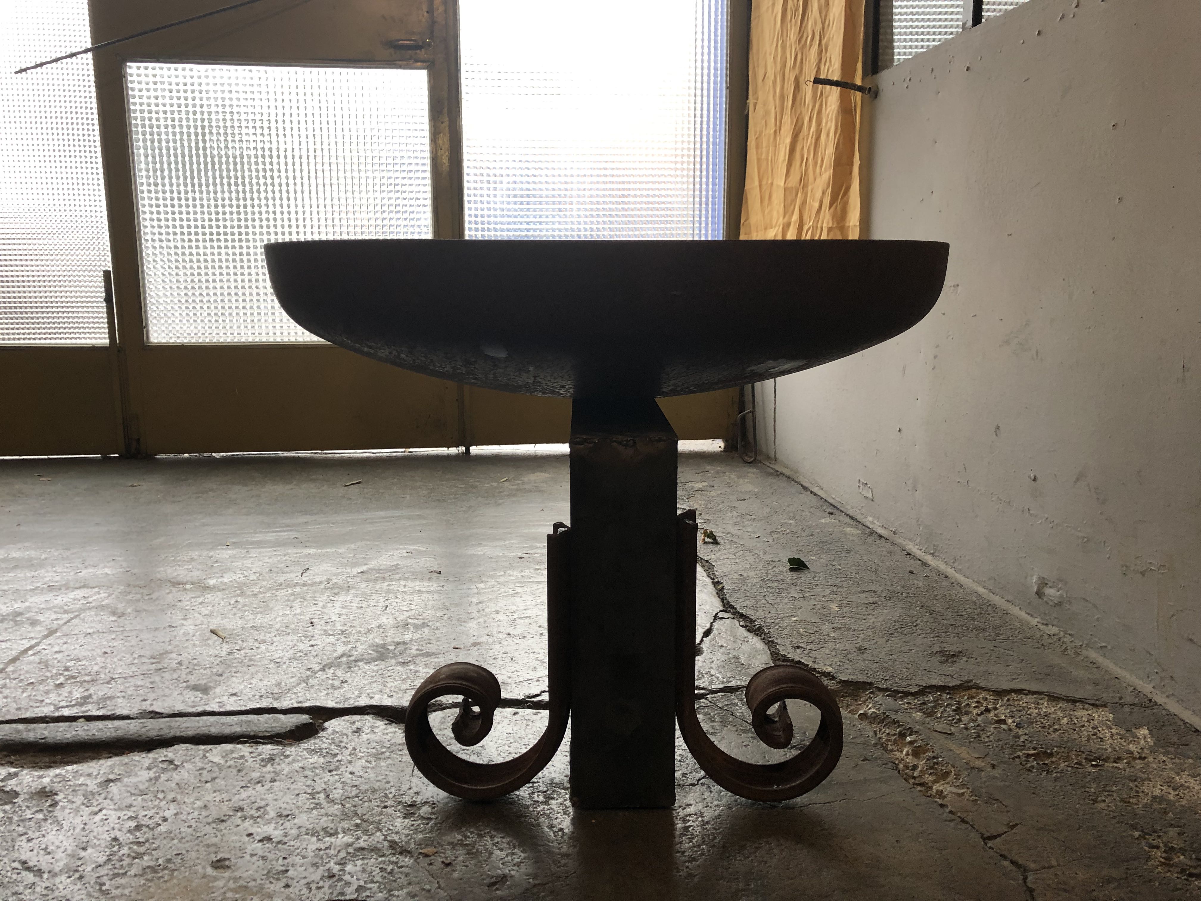 This is a simple and clean brazier made with pieces I already had around my workshops. Just cut, grind, weld, grind. Ah… and also some piercing: the round vase can be removed from the C-stand as well as the 2 forged iron legs. So to make easier moving it, since it’s not that light…