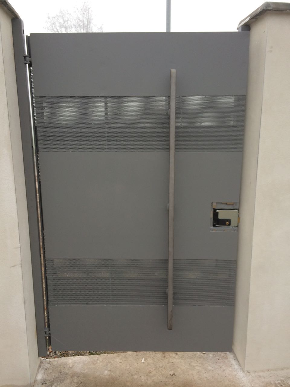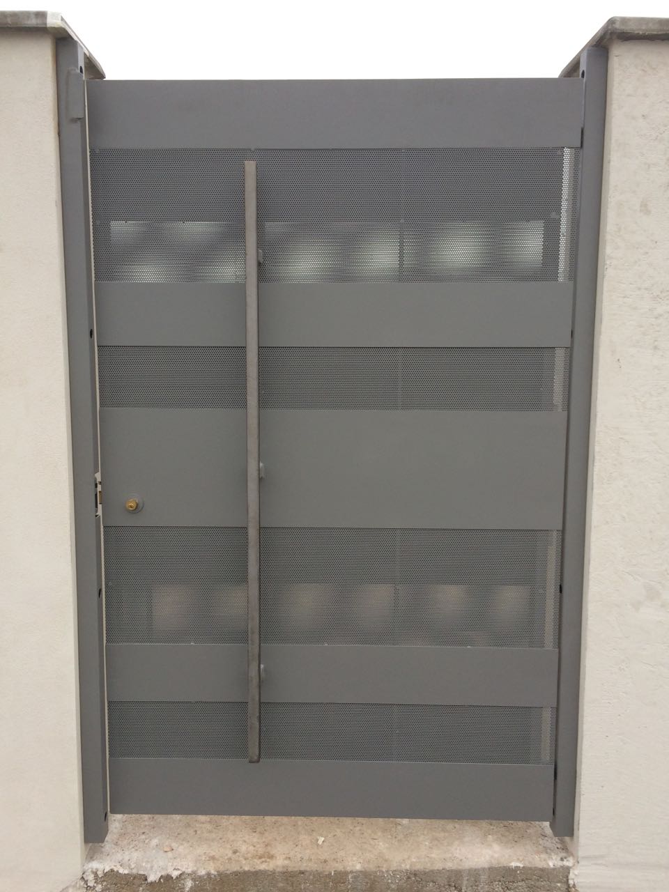 As for the combined gate (MattoMatto) the most important feature of this entrance door is privacy: the internal and the external faces have different designs, composed by alternated plain and perforated metal sheets. This solution lets the people inside the property see if someone (or something) is outside the entrance door. At the same time anyone from outside cannot see inside the property unless he/she ducks in corrispondence of the two perforated metal sheets (of inner and outern faces), and even in that case it’s not possible to clearly see what’s behind the entrance door.