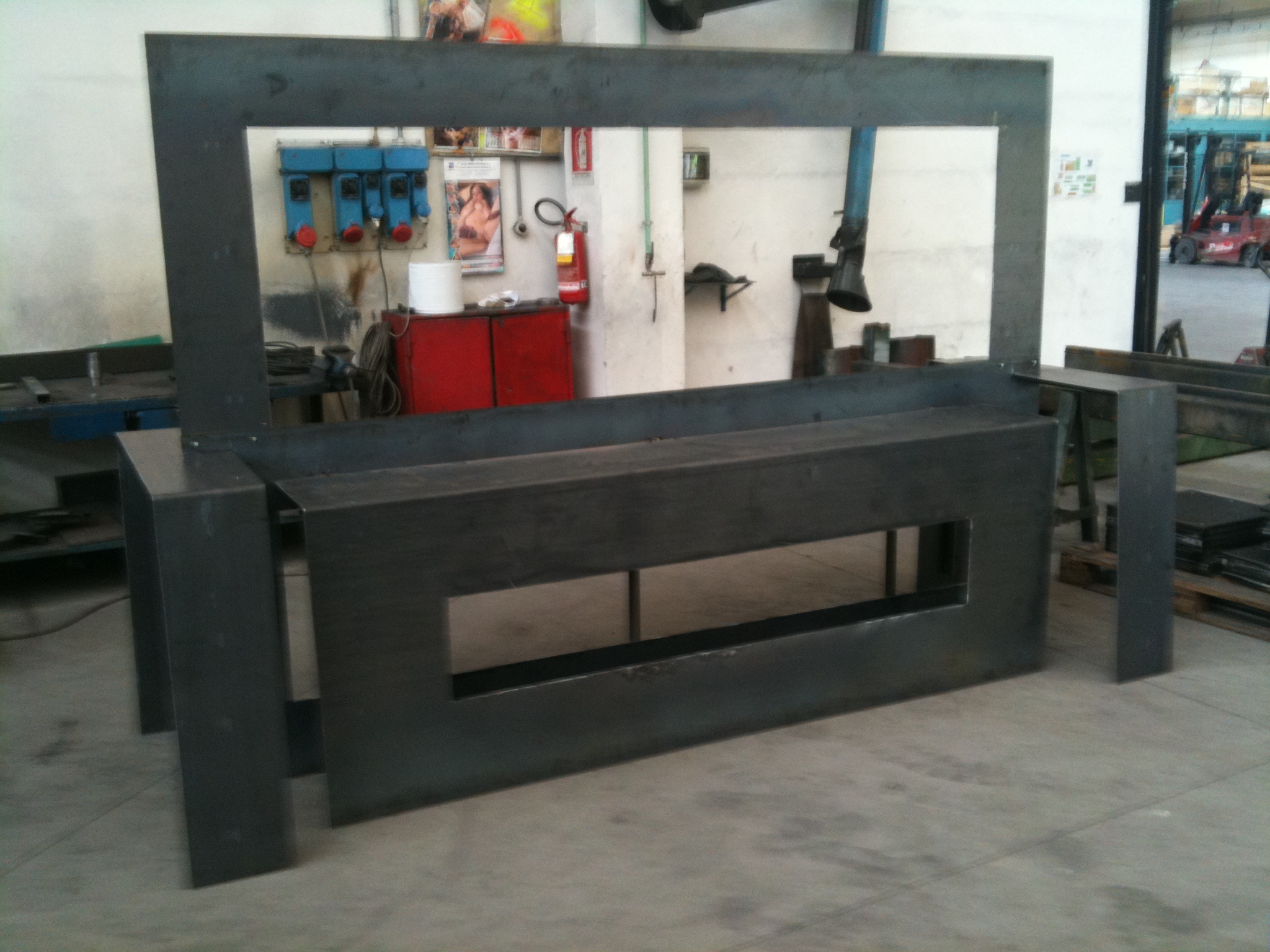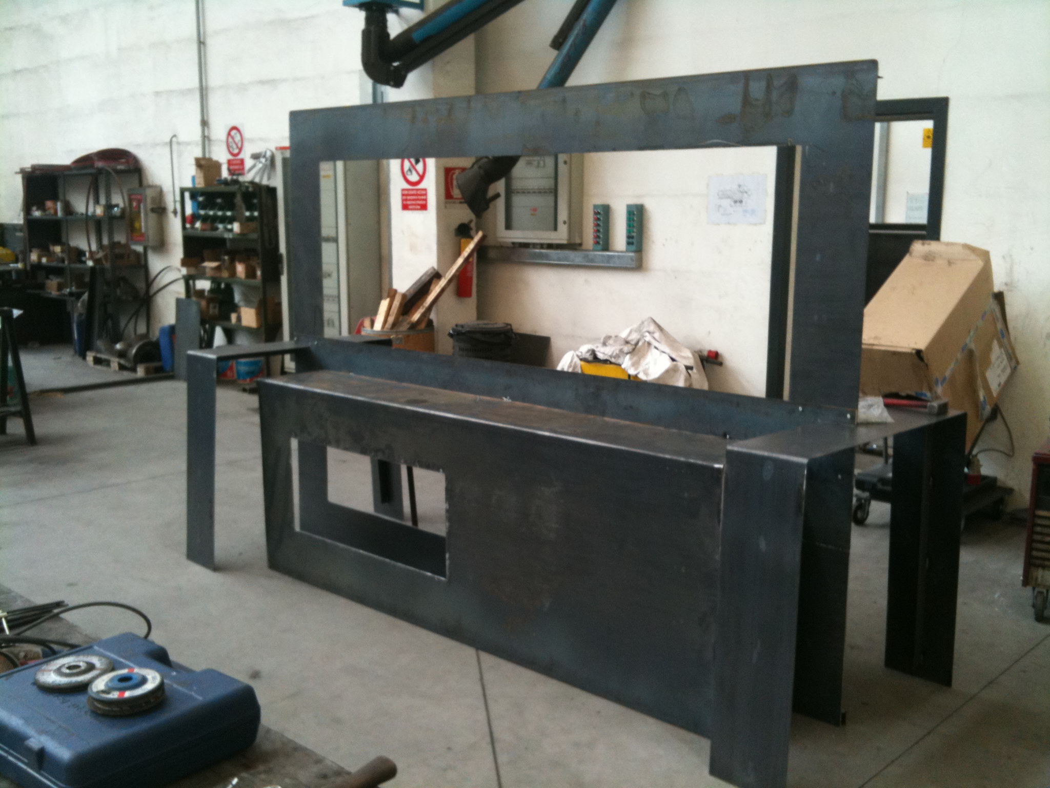 The result is a 3000 x 2200mm central frame to which shelves and legs are screwed. It’s not heavy, it’s easy to assemble and disassemble. The design is clean and tight.